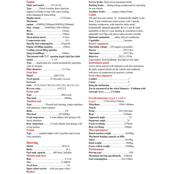 •Wide engine power range, more choices for customers, suitable for different road condition transportation.